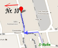 (aus Frankfurt kommend ist es die richtige Seite)bei Austieg rechts gehen und nach Überführung links bis zur Kronberger Str., dort nach rechts gehen, in 200 m links Ziel erreicht!